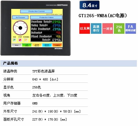GT12系列觸摸屏:GT1200系列觸摸屏在原先GOT-F900和GT1100的基礎上升級而來。內置多種接口:GT1200觸摸屏內置以太網,RS-422/485,RS-232,可同時連接兩種FA設備。高速下載上傳:內置USB-Mini接口,上傳下載速度更快。液晶效果提升:TFT液晶顯示器可提供更優質的畫面,VGA精度令人賞心悅目