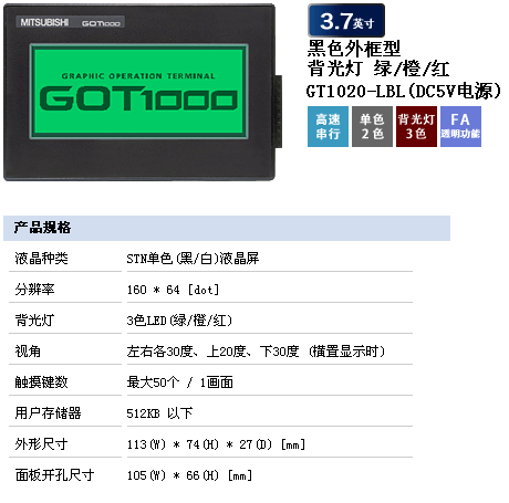 GT1020-LBD-C可代替F920GOT-BBD5-K-C